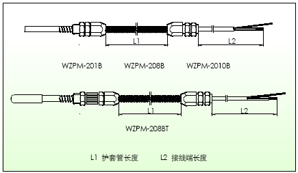 2)鎧裝 pt100鉑熱電阻型號(hào)WZPK系列